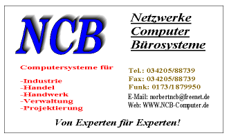 Unsere E-Mailadressen: NCB-Computer E-Mail: norbertw@ncb-computer.de - E-MAIL: info@ncb-computer.de